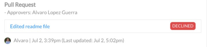 - When a pull request is declined, it will also be confirmed in your task: