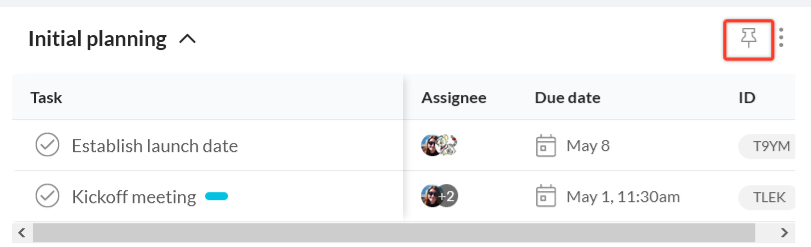 - The pin icon will be moved, indicating the default list has changed.