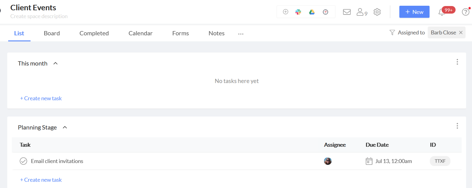 - Once the filter has been applied, only the tasks that meet the filter's criteria will be visible in the space.