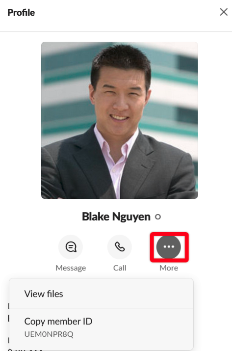 - Click on a user name within Slack.