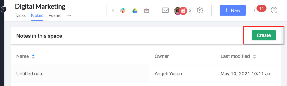 - You can also right-click the note in the Notes tab in the space and select "Copy Link."