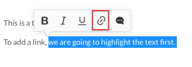 - To edit a link, highlight the linked text and click on the pencil icon.
