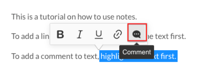 - To add a comment, highlight text, right-click and select the comment bubble. Click the checkmark to save the comment.