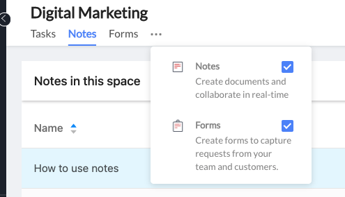 - Click on the ellipsis (...) to the right of the Tasks tab in your space.