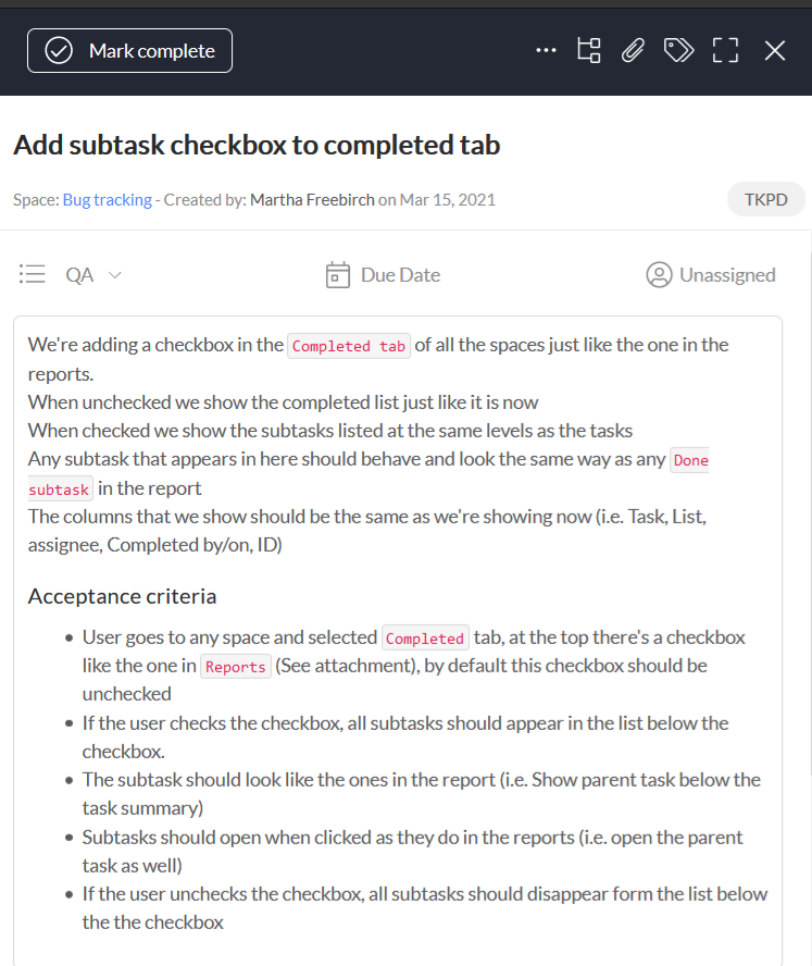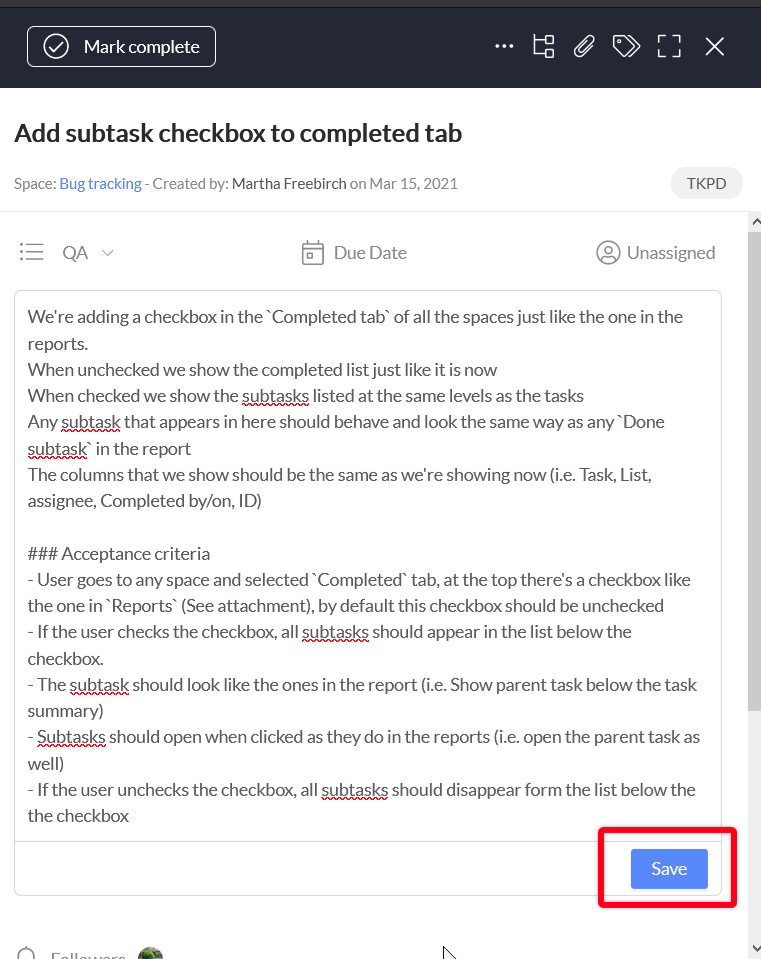 Adding a description to a task is a great way to provide information about a task, ensuring clear objectives for your assignee(s.)